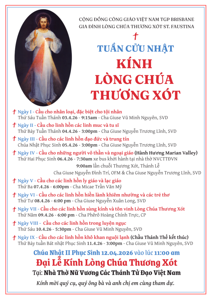 Tuần Cửu Nhật kính Lòng Chúa Thương Xót 2025
